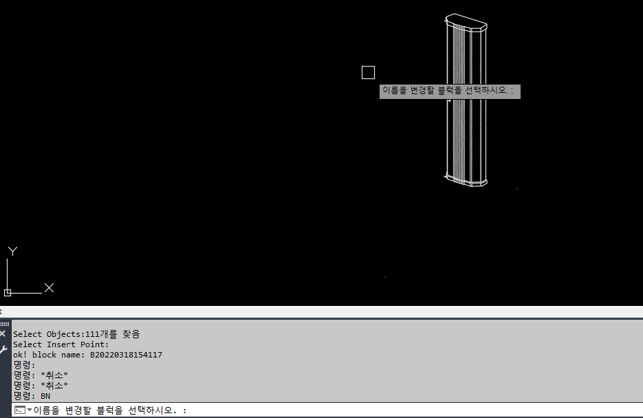 2. 명령어 "BN"을 입력하시고, 이름을 변경할 블록을 선택하게 되면 위와 같은 창이 뜹니다.